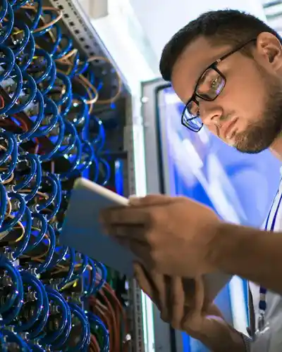 Sistem Odası (Veri Merkezi) Tasarımı: İşletmenizin kalbi olan sistem odanızı (sunucu odası), profesyonel Rack Kabinet yerleşimi, patch panel düzenlemesi, etiketleme ve soğutma standartlarına uygun olarak tasarlar ve kurarız. Düzenli bir sistem odası, arıza tespitini dakikalara indirir.